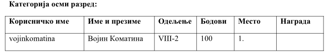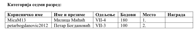 Честитамо ученицима и њиховом предметном наставнику, МИЋИЋ Владимиру, на успеху и желимо им много успеха и среће на наредном нивоу такмичења! Браво!
